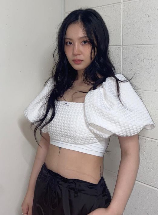 특히 명치에 한 타투(문신)와 더 예뻐진 미모가 눈길을 사로잡는다.