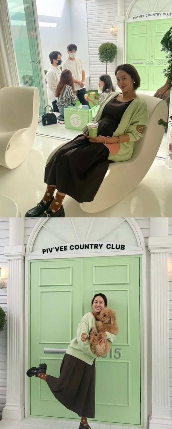 공개된 사진 속에는 만삭의 배를 안고 카메라를 향해 행복한 웃음을 짓고 있는 전혜빈의 모습의 담겼다. 다른 사진에는 강아지를 안고 활짝 웃으며 상큼한 매력을 뽐내고 있다.