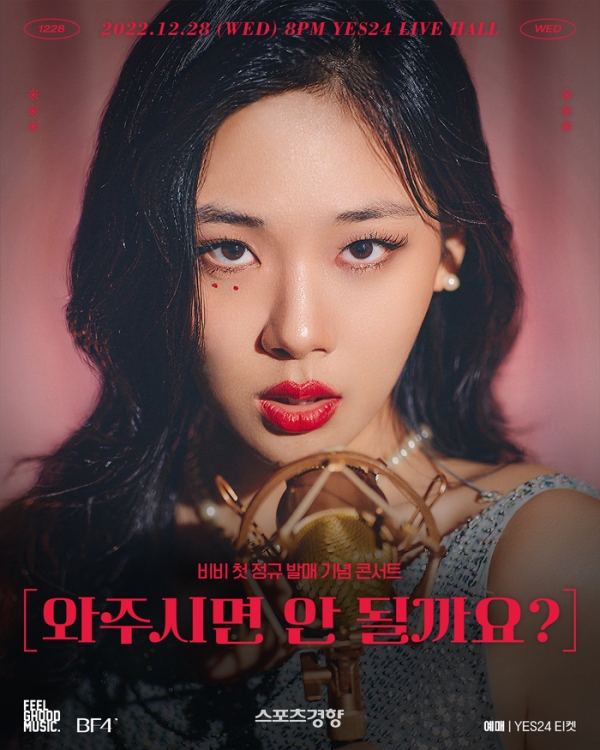 비비의 소속사 필굿뮤직은 “비비에 대한 국내외 음악팬들의 지지에 깊은 감사를 드린다”며 “데뷔 첫 콘서트 역시 파격적인 무대와 구성으로 즐거운 추억을 선사할 것”이라고 기대감을 높였다.