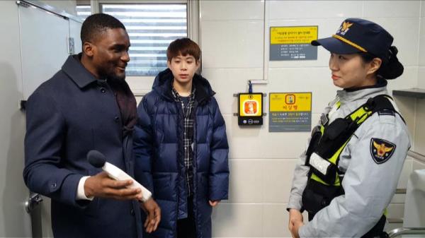 전국 공중 화장실 곳곳에 설치된 사물인터넷 비상벨 시스템 기능을 알아보기 위해 경찰관의 도움을 받아 실험을 진행하던 도중 샘 오취리를 향한 미모를 겸비한 경찰관의 급작스러운 고백(?)에 샘 오취리도 싫지 않은 반응을 보이며 두 사람 사이에서 묘한 핑크빛 기류가 형성됐다.