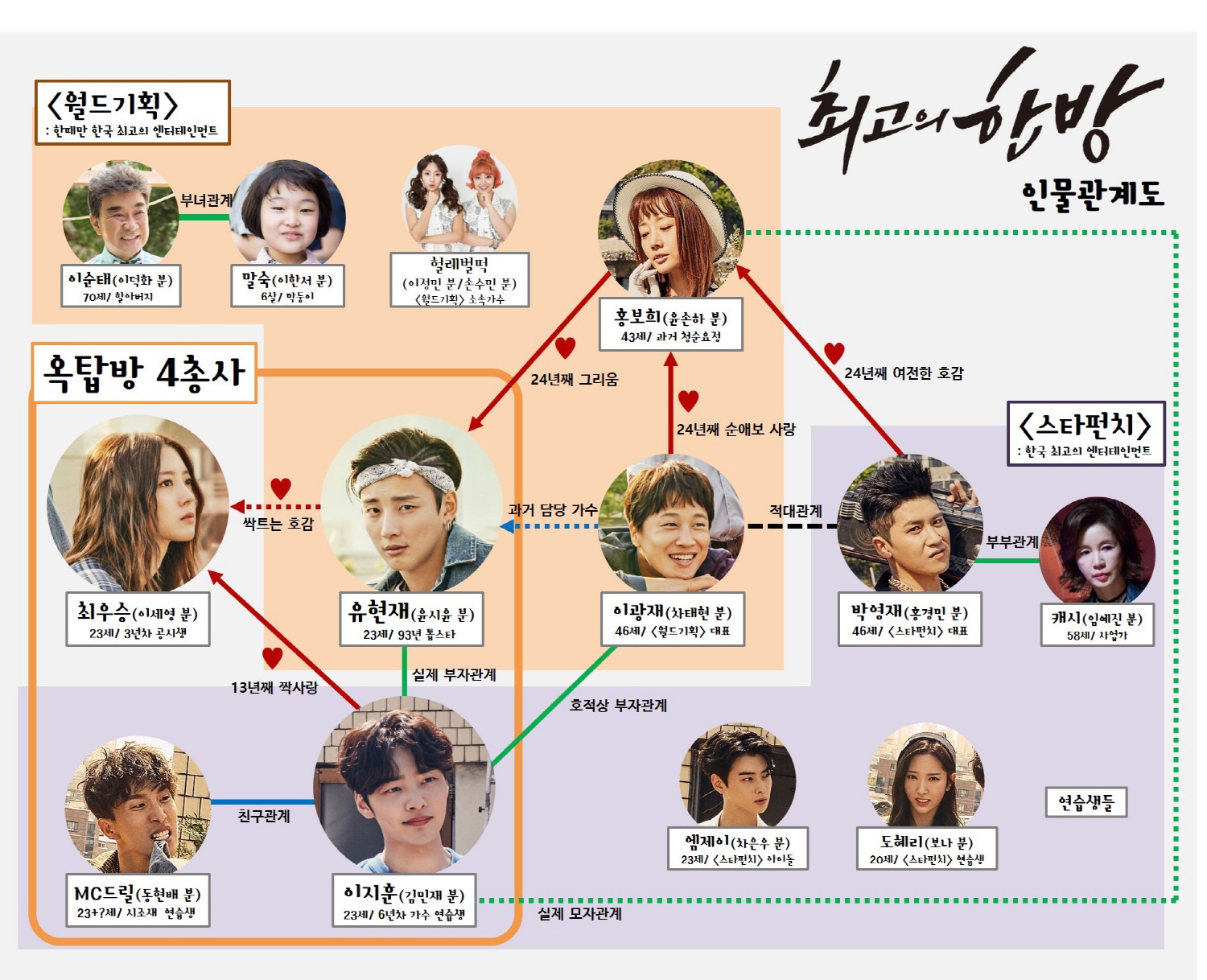 [스타인뉴스 이상백 기자]예능드라마 ‘최고의 한방’의 비밀 가득한 인물관계도가 공개돼 이목을 집중시키고 있다.