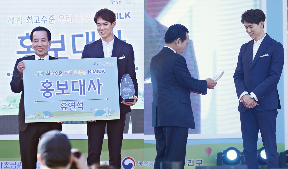 공개된 사진 속 유연석은 블루 빛의 슈트를 입고 단정한 차림으로 무대에 서있다. 그는 이승호 우유자조금 관리위원장으로부터 우유 홍보대사 위촉패를 받으며 특유의 부드럽고 환한 미소를 짓고 있다.