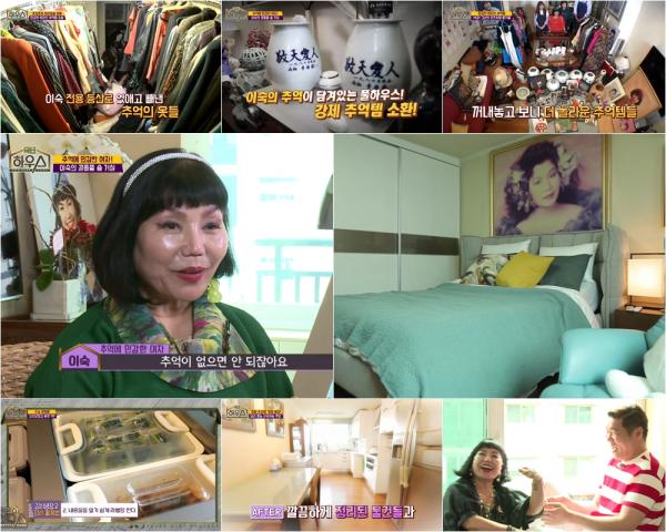 이숙의 집은 여배우의 집답게 곳곳에 그녀의 자기애를 느낄 수 있는 액자들을 비롯해, 추억을 한가득 담은 많은 물건들이 자기의 자리를 찾지 못하고 있었다. 특히 침실은 옷과 각종 물건들로 점령당한 모습이었다. 옷방 역시 문을 열지 못할 정도에 옷을 토해낼 정도로 가득 차 있었고, 이불 산을 타야만 옷을 꺼낼 수 있어 모두를 놀라게 했다.