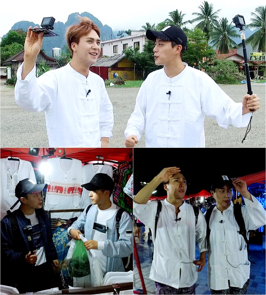 그런 가운데, 윤두준과 손동운의 케미가 돋보이는 커플룩 인증샷이 공개돼 시선을 강탈하고 있다. 스틸 속 두 사람은 라오스 전통 상의와 화려한 패턴의 냉장고 바지를 입고 포즈를 취하고 있다. 이는 라오스 시장서 윤두준과 손동운이 물오른 흥정 능력을 발휘해 득템한 의상. 특히 윤두준은 냉장고 바지를 발견하고는 “냉바다 냉바”라며 득템 의지를 불태워 VCR을 보는 이들을 웃음짓게 했다는 후문이다.
