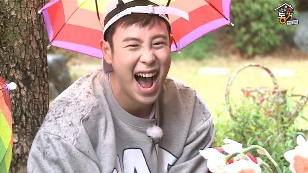 피오와 조세호가 집주인 스티브J&요니P의 계약 조건이었던 정원 가꾸기에 나선 가운데 비가 오기 시작하자 조세호는 “이거 의외로 괜찮다∼”라며 비장의 아이템인 ‘미니 무지개 모자 우산’을 꺼낸 것.