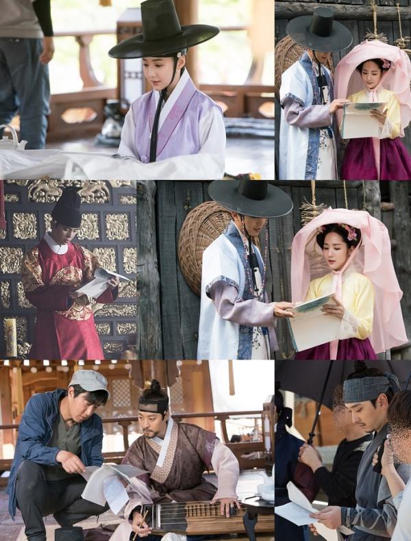 남장을 한 채 대본을 바라보는 박민영, 대본을 손에 든 채 이역의 감정에 집중하는 연우진, 이정섭 감독과 함께 대본을 분석하며 디테일을 살리려는 이동건, 고난도 수중 액션촬영을 앞두고 대본을 보고 또 보는 황찬성, 설레는 케미를 위해 같이 대본을 보며 호흡을 맞춰보고 논의하는 박민영-연우진 등. 공개된 사진들을 통해 ‘7일의 왕비’ 배우들이 휘몰아치는 전개 속에서도 디테일한 감정선을 담아낸 비결을 엿볼 수 있다.