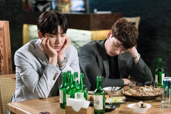 그런 지욱의 옆에서 은혁 역시 취기를 견디지 못하고 떨어지는 고개를 간신히 팔로 받치고 있어 웃음을 자아낸다. 테이블 가득 놓여진 빈 병들이 이들의 음주량을 가늠하게 한다.
