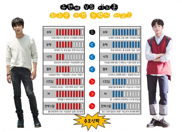 외모부문에서 현재-지훈은 우위를 가릴 수 없는 훈훈한 외모와 스타일로 해금 동점을 이루고 있는 가운데, 눈빛부문에서는 우승을 바라보는 꿀 눈빛을 지닌 지훈이 10점 만점으로 압도적인 우위를 차지하고 있다. 또한 지훈은 성격-말투 부문에서도 각각 9점을 차지하며 현재를 가뿐히 누르고 있다. 우승이 고민이 있을 때면 옆에 다가가 어깨를 내어주는 등 우승을 위해서라면 무엇이든 다 해주는 지훈의 다정다감한 성격과 진지하고 담백한 말투가 여심을 저격하고 있는 것.