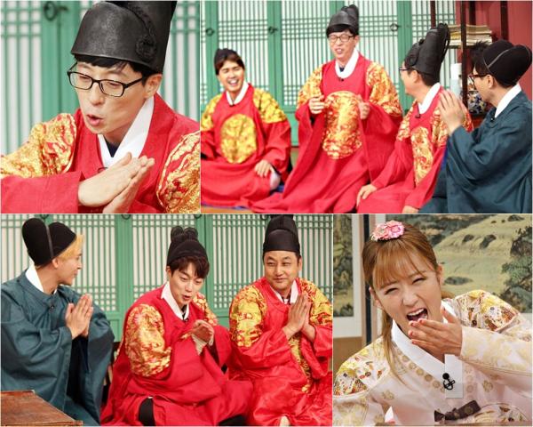그런가 하면 유재석을 제외한 조동아리 멤버들과 윤두준-손동운은 ‘쿵쿵따’ 초보인 본인들을 쥐락펴락하는 유재석의 내공과 깐족거림에 발끈해 ‘반 유재석 동맹’을 맺어 눈길을 끌었다. 이들은 ‘벌칙을 받은 사람이 자리배치 권한을 갖는다’는 룰과 ‘한방단어’를 이용해 유재석에게 벌칙을 안기기 위해 머리를 맞댔다. 그러나 거듭된 협공에도 불구하고 요리조리 벌칙을 피해가는 유재석을 보며, 지석진은 “근데 우리가 유재석을 보낼 능력이 있니?”라고 자괴감을 토로해 현장을 웃음바다로 만들었다는 후문. 이에 유재석과 ‘반 유재석 동맹’의 치열한 지략대결이 펼쳐질 ‘쿵쿵따’ 본 게임에 기대가 높아진다.