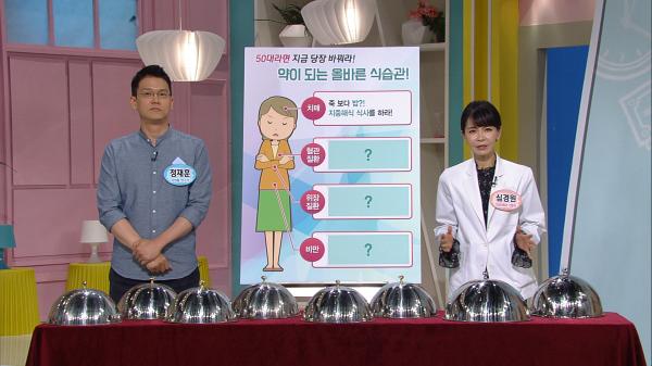 남은 인생을 행복하고 건강하게 보내기 위해 반드시 바꿔야하는 식습관과 추천 음식까지 낱낱이 공개! 가정의학과 전문의 심경원, 식생활 연구가 정재훈! 전문가 2인과 50대에 반드시 개선해야 할 식습관에 관한 모든 것을 알아본다.