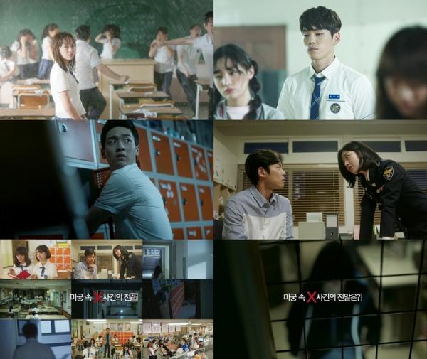 갑자기 쏟아지는 물줄기에 환호하는 학생들, 어두운 저녁 검은 후드로 얼굴을 가린 채 반별 평균 성적이라고 쓰인 종이를 불태워버리는 의문의 용의자. 그리고 이를 예의주시하며 “한 번만 더 이딴 일이 일어날 때는 학교도 가만두지 않겠다”고 경고하는 교장 양도진(김응수)은 최근 연쇄적으로 발생한 미궁 속 X사건 때문에 긴장감이 감도는 학교 분위기를 여과 없이 보여주고 있다.