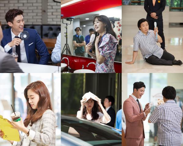 사진 속 강경준과 이주연, 차도진, 김병춘은 미니 선풍기를 들고 더위를 식히고 있다. 특히 차도진과 김병춘은 극 중에서 원수 관계지만 촬영 현장에서는 부자(父子)같은 다정한 모습으로 훈훈함을 더했다.