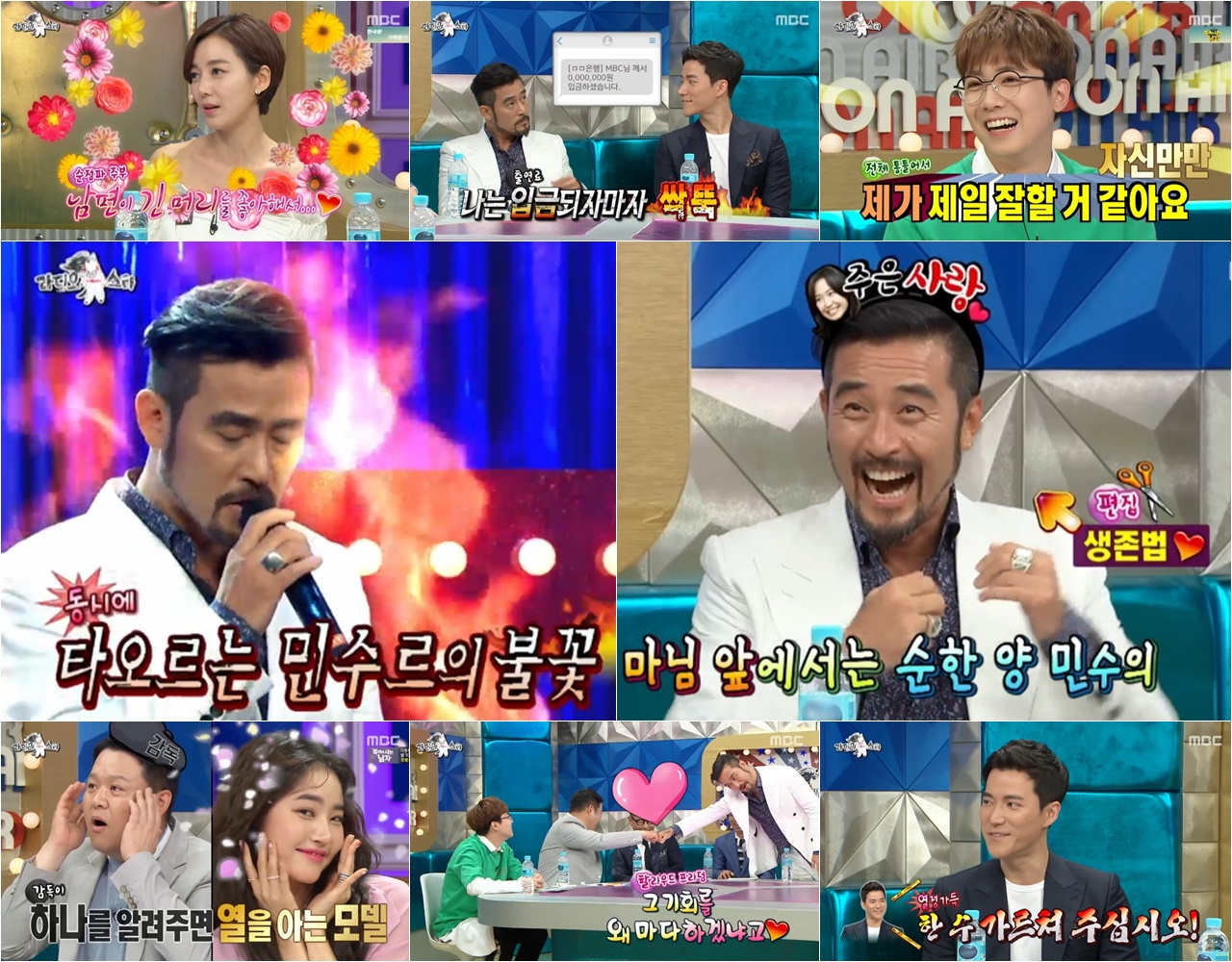 최민수는 “오늘 게스트 중에서 누구를 꽃피우고 싶나”라는 질문에 “나만 살면 돼”라고 말해 MC들을 KO시켰고, 드라마 ‘죽어야 사는 남자’ 속 캐릭터를 얘기 하던 중 “아랍어도 하나? 좀 보여달라”는 말에 남다른 연기를 보여줘 시선을 집중시켰다. 그러나 최민수의 연기에 김구라는 “그냥 막 하는 거 아니에요?”라며 말했고, 이에 최민수는 웃으며 “어떻게 알았어~”라고 이실직고 하는 등 유쾌한 웃음으로 모두를 웃게 만들기도 했다.