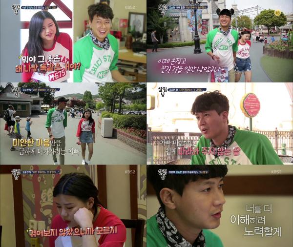 김승현은 미안한 만큼 빨리 가까워지고 싶은 마음에 “놀이기구를 같이 타고, 같이 걸어다니면서 손도 잡을 수 있고, 딸과 좀 더 가까워질 수 있지않을까”라고 생각했다.