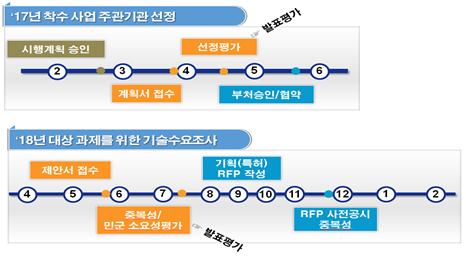 사업별 각 과제들은 올 3월 주관연구기관 선정공고, 4월에 선정기관 평가를 거쳐 5월에 협약이 진행될 예정으로서, CMS(Cash Management System) 시범도입, 다단계 평가 등을 통해 사업관리의 효율성과 투명성을 강화하기로 했고, 협약변경 처리 가이드라인 사전 제공, 사업관리 절차 교육 등을 통한 행정소요 최소화, 기술정보교류회, 활성화 컨퍼런스, 성과발표회 등의 개최를 통해 참여기업의 저변을 확대 및 성과의 실용화 촉진, 관련기관과 협조하여 민·군기술협력사업 우수품목에 대한 해외전시 참가 및 해외시장 개척을 위한 수출상담을 지원하기로 했다.