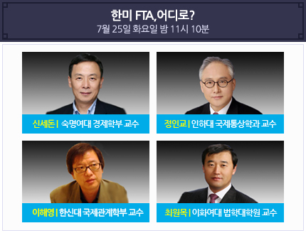 25일 밤 MBC <100분 토론>에서는 각계 전문가들과 함께 한미 FTA의 득실을 따져보고 무역 불균형을 호소하고 있는 미국에 맞설 우리의 대응전략을 모색해본다.