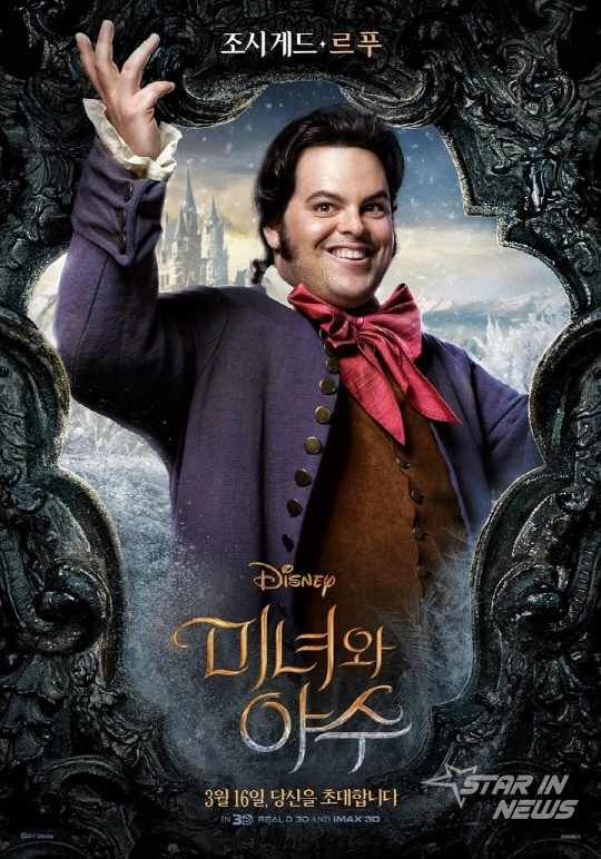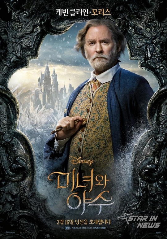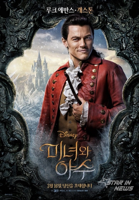 '개스톤'역을 맡은 루크 에반스는 연기력과 더불어 훤칠한 외모로 한국에서도 널리 알려진 배우이다. 드라큘라 언톨드, 분노의 질주, 호빗 시리즈 등으로 많은 인기를 얻었다. 이외에도 '르 푸'역할을 맡은 조시 게드(Josh God), '모리스'역의 케빈 클라인(Kevin Kline), '야수, 왕자'역을 맡은 '댄 스티븐스(Dan Stevens)'의 포스터가 공개되었다. 포스터에서 아름다운 오르골을 만드는 괴짜 예술가이자 벨의 아버지인 '모리스'는 비밀스러운 표정을 보이고 있어 궁금증을 자아낸다.
