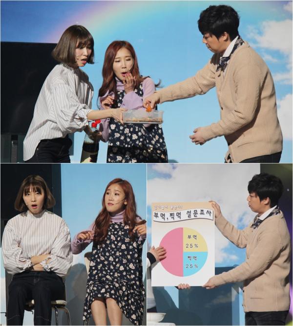 한편 지난 22일 진행된 공개 녹화에서 박소영-박소라와 김기열이 탕수육 먹방을 놓고 팽팽하게 의견이 갈려 이목을 집중시켰다. 탕수육 소스를 두고 ‘찍먹파’ 박소영-박소라와 ‘부먹파’ 김기열이 나눠진 것. 특히 박소영-박소라는 일식의 초밥을 예로, 김기열은 간 짜장을 예로 들며 자신의 의견을 주장해 웃음을 터트렸다. 고조되는 분위기 속에서 급기야 방청객들까지 ‘찍먹부먹’으로 갈리며 공개 녹화장이 후끈 달아올랐다는 전언.