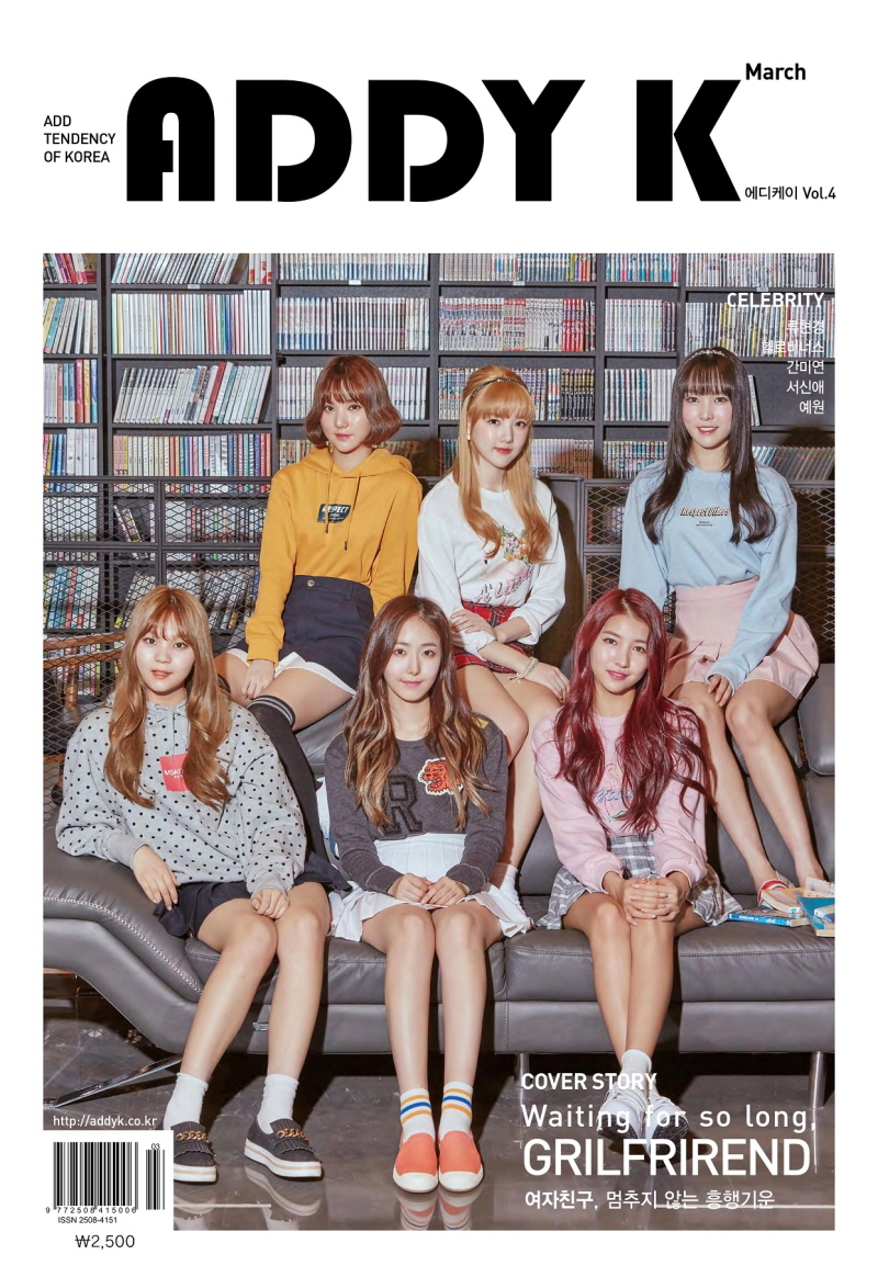여자친구의 화보와 인터뷰는 에디케이(ADDY K) 3월호 에서 볼 수 있으며 에디케이 웹사이트와 SNS(페이스북,인스타그램,카카오스토리) 및 네이버TV캐스트,유튜브에서 다양한 콘텐츠로 접할 수 있다.