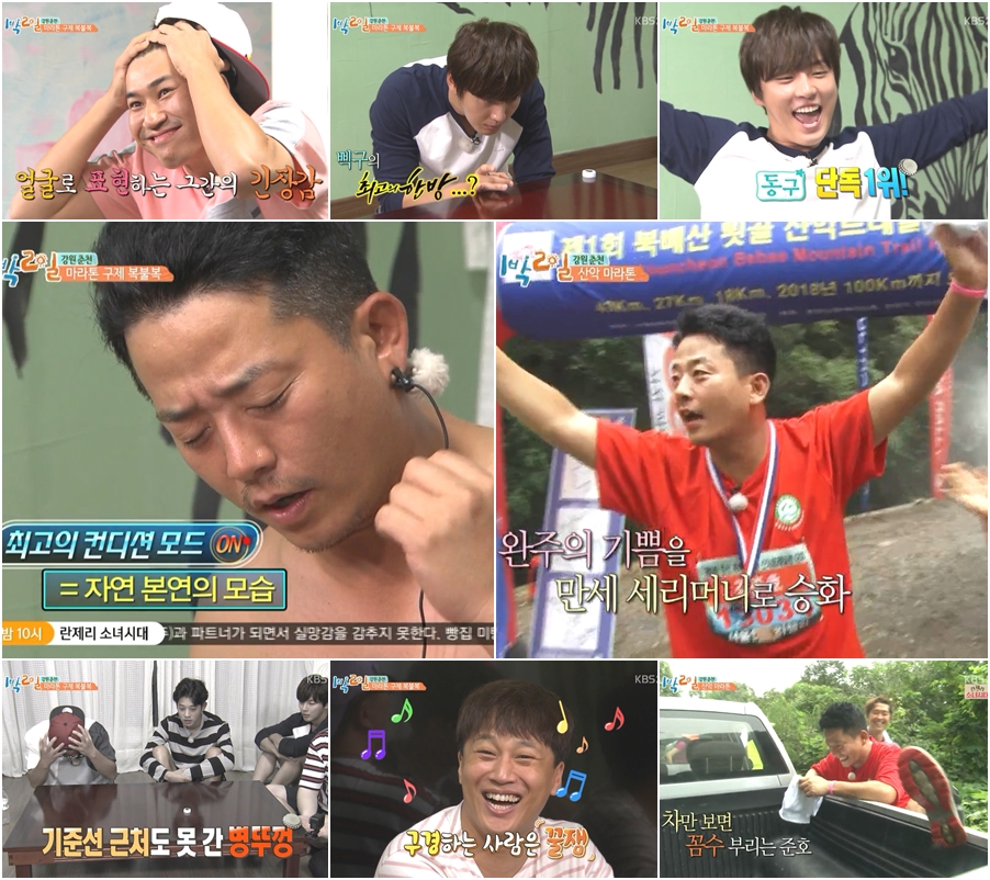 [스타인뉴스 김은영 기자]김준호가 해냈다. 최고의 승부사 김준호가 병뚜껑 레이스에서 패한 후 '1박 2일'의 역대급 벌칙 '춘천 산악마라톤'에 멤버 중 유일하게 참가해 꼴등이지만 무사히 완주하며 안방극장에 큰 웃음을 선사했다. 얍쓰의 꼼수와 투덜이 본능 속에도 결국은 해내는 집념의 모습을 선보이며 눈물 나는 웃음을 선사했다.