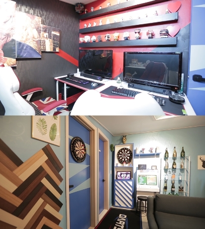 2층 거실은 남자들의 로망을 실천한 공간으로 오락실 겸 홈바가 자리잡고 있다. 각종 게임기기들이 들어차 있어 남자들에겐 그야말로 천국이나 다름없다. 옆방엔 모니터가 2개인 PC방을 만들어 함께 게임도 즐길 수 있다고 한다. 이곳 역시 과자와 음료를 비치해 진짜 PC방에 온 것 같은 느낌을 준다.