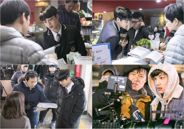 공개된 사진 속 카이는 연출을 맡은 박기호 피디와 리허설 전 대본을 함께 보며 캐릭터 및 각각의 장면에 대해 의견을 교환하고 있는가 하면 촬영이 끝난 후에는 김재환 촬영감독 곁에서 화면 속 자기 모습을 다시 한번 확인하며 모니터링하고 있다.