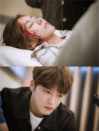 KBS 2TV 수목드라마 ‘맨홀-이상한 나라의 필’(연출 박만영, 극본 이재곤, 제작 셀트리온 엔터테인먼트, 이하 ‘맨홀’) 측은 21일 머리에서 피를 흘리고 있는 유이와 이를 안타깝게 바라보는 김재중의 모습을 담은 사진을 공개해 궁금증을 자극했다.