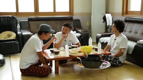 2일차 오전 미션을 마친 후, 여느 때와 다름없이 계획표대로 생활하며 평화로운(?) 한때를 보내고 있던 ‘가두리’에 낯선 손님이 들이닥쳤다. 불시에 습격 받은 윤다훈, 조정치, 최대철 세 남자는 손님의 깜짝 등장에 일동 얼음이 됐고 멘붕에 빠졌다.