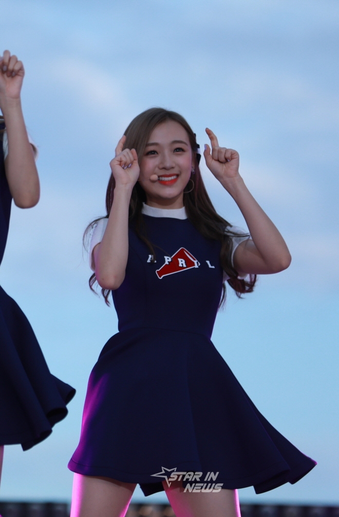 에이프릴 진솔이 예쁜 무대를 꾸미고 있다.